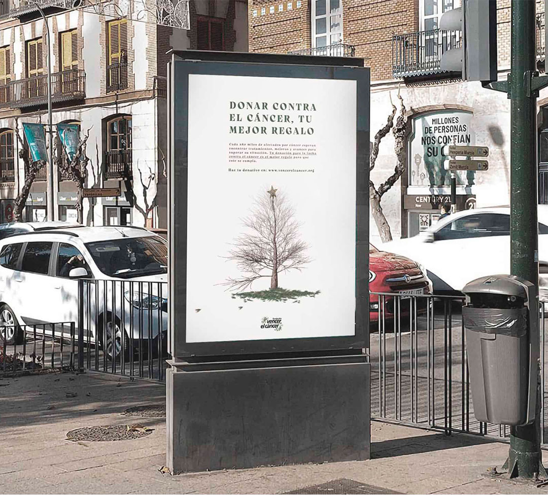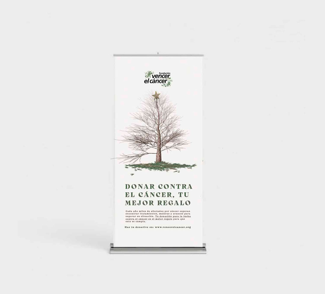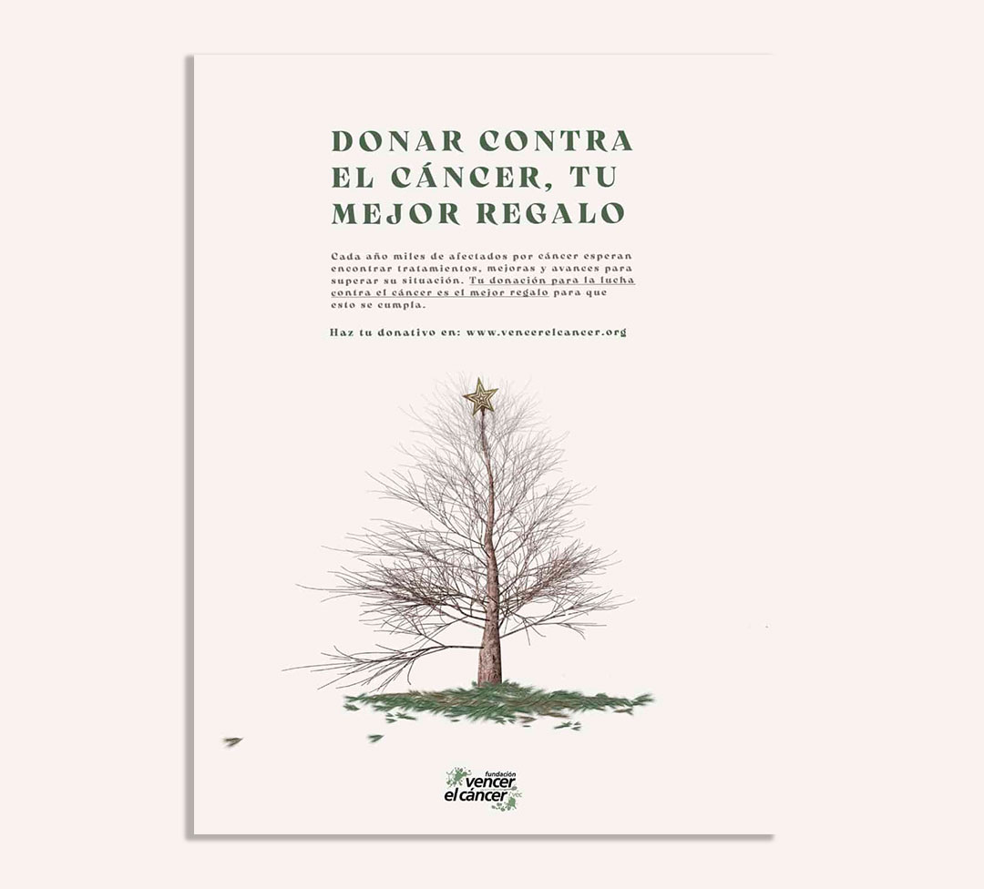 Si buscas a acertar con un regalo perfecto en navidades, la donación para la lucha contra el cáncer es tu mejor opción. Un concepto visual en el que las hojas del carbol de navidad aluden a la caída del pelo como consecuencia de los tratamientos contra el cáncer.